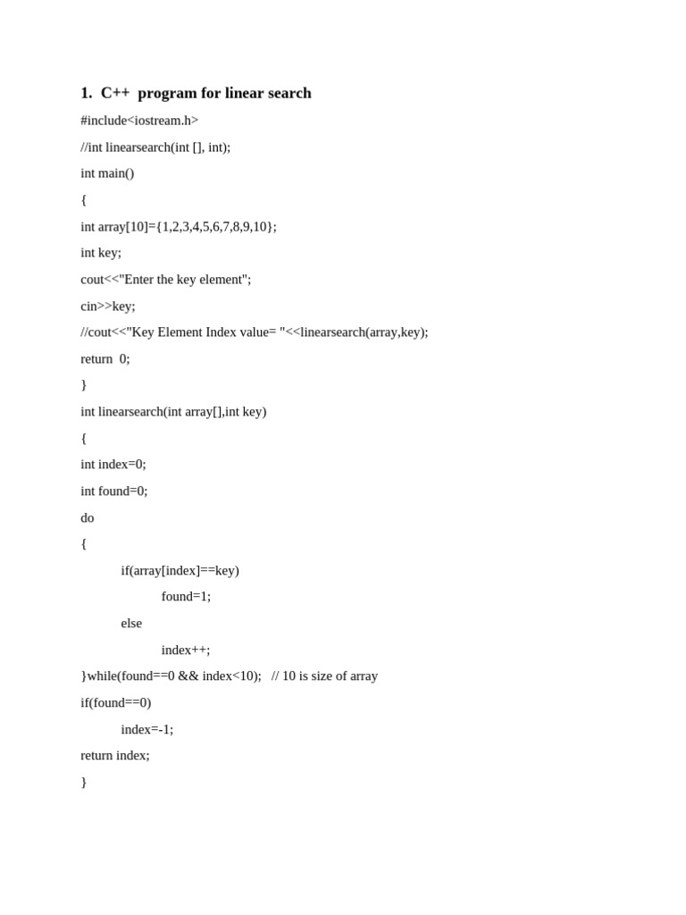 C++ program for linear search