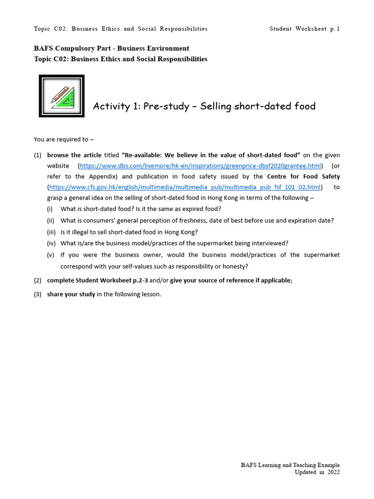 Topic C02: Business Ethics and Social Responsibilities Student Worksheet p. 5