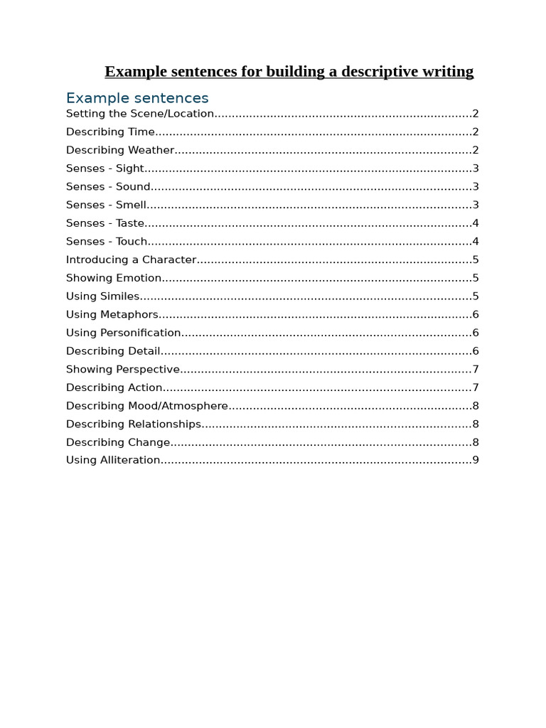Example sentences for building a descriptive writing