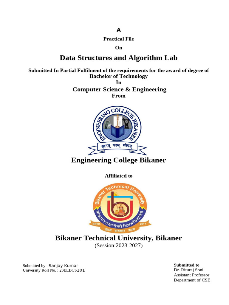 University Roll No. : 23EEBCS101 Dr. Rituraj Soni