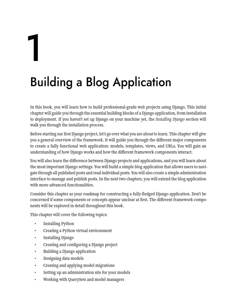 Consider this chapter as your roadmap for constructing a fully-fledged Django application. Don’t be