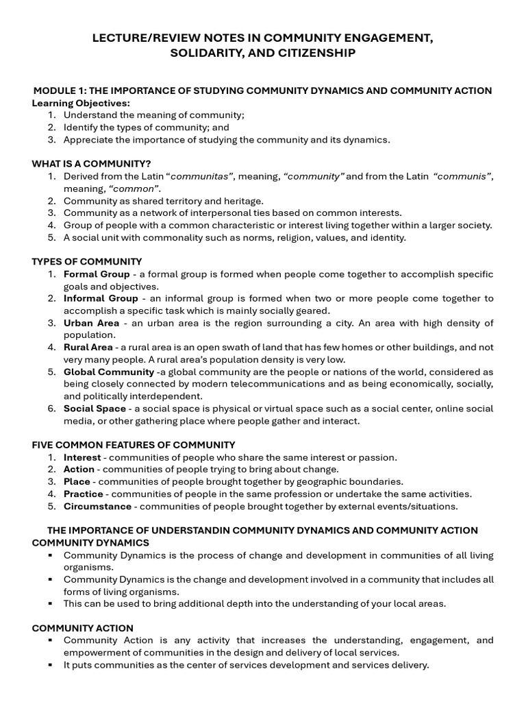 LECTURE/REVIEW NOTES IN COMMUNITY ENGAGEMENT,