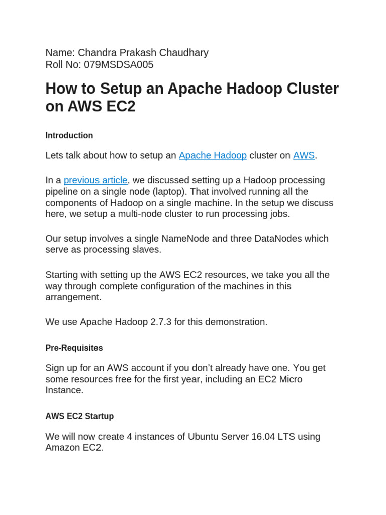 Lets talk about how to setup an Apache Hadoop cluster on AWS.