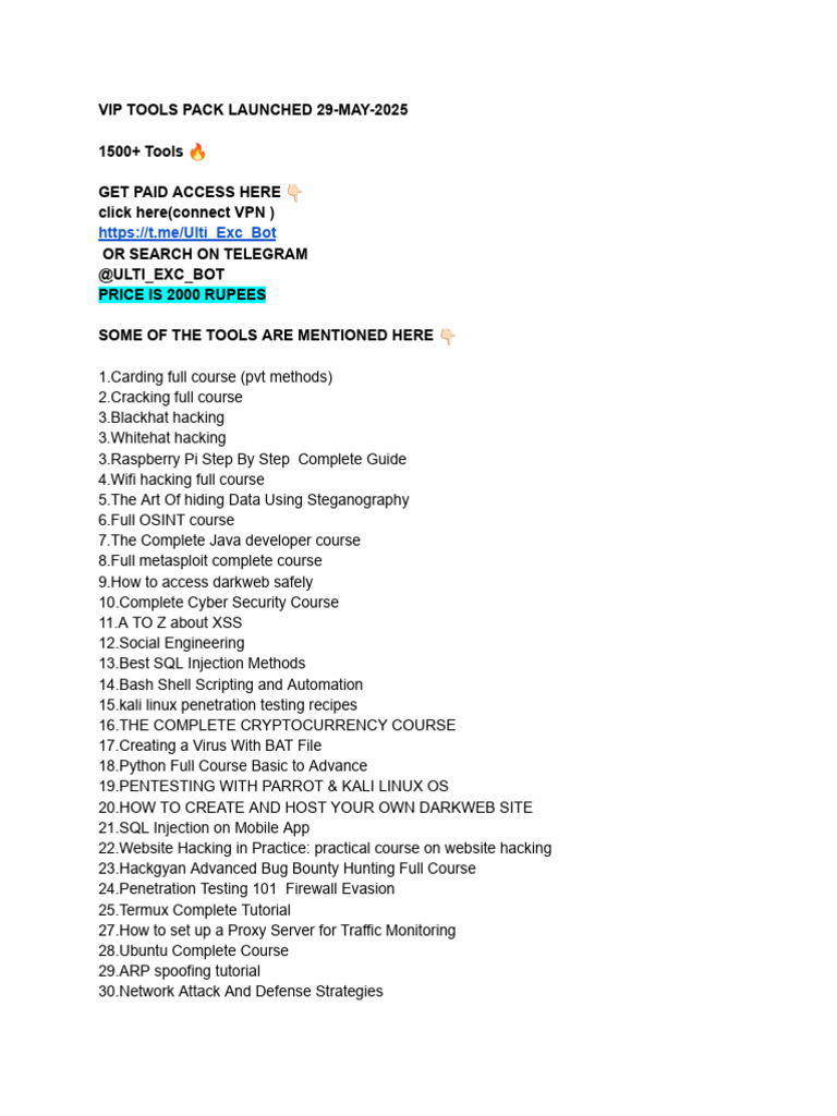 VIP TOOLS PACK LAUNCHED 29-MAY-2025
