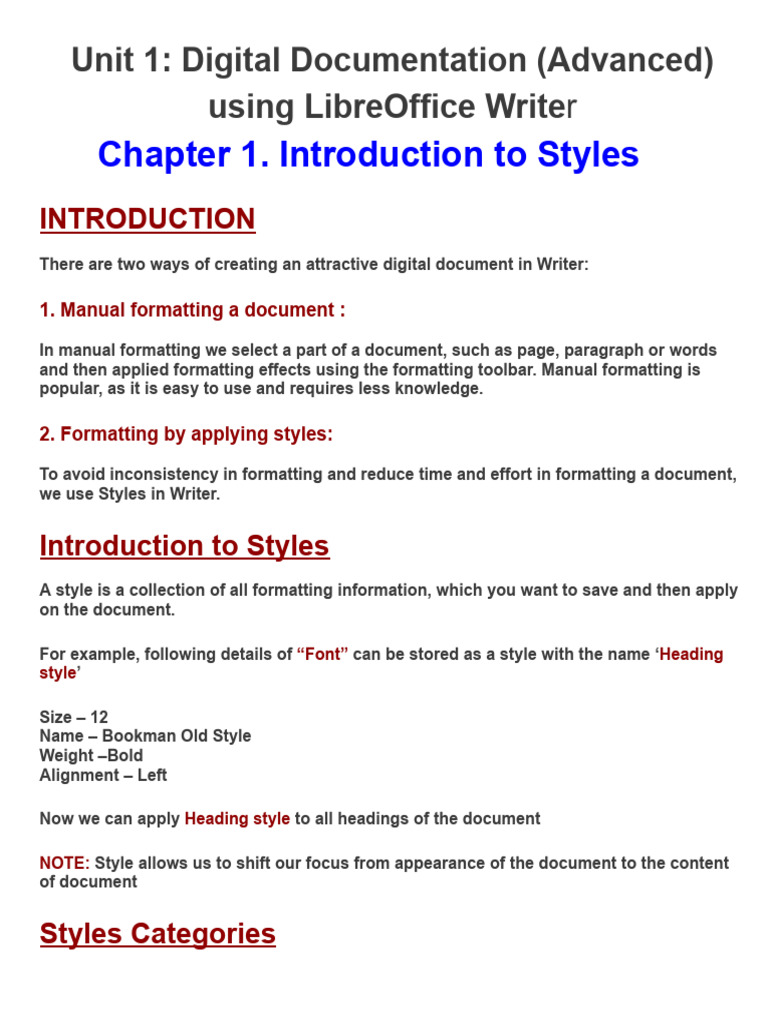 Writer provides many options and tools to style or format a document. Styles in Writer, can