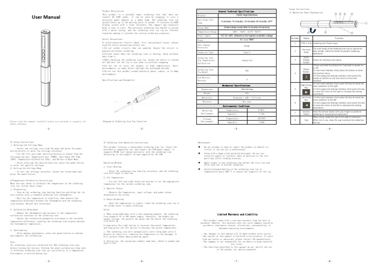 To avoid potential electric shock, fire, and personal injury, please 1 TYPE-C Port Soldering Iron Power Input