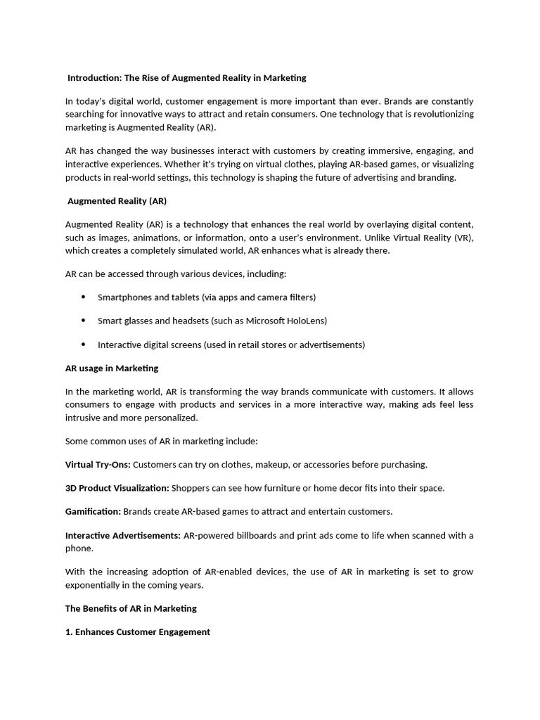 store or shopping online, AR allows brands to provide additional product details, interactive
