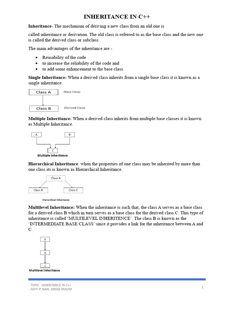 Multilevel Inheritance: When the inheritance is such that, the class A serves as a base class