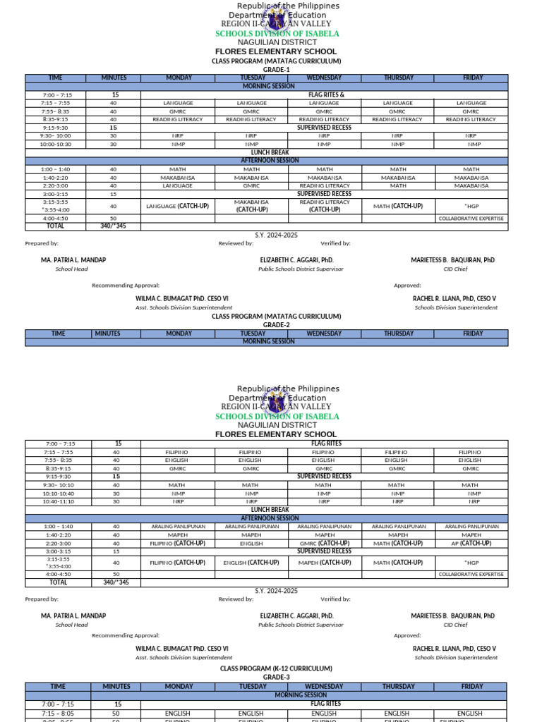 CLASS PROGRAM (MATATAG CURRICULUM)