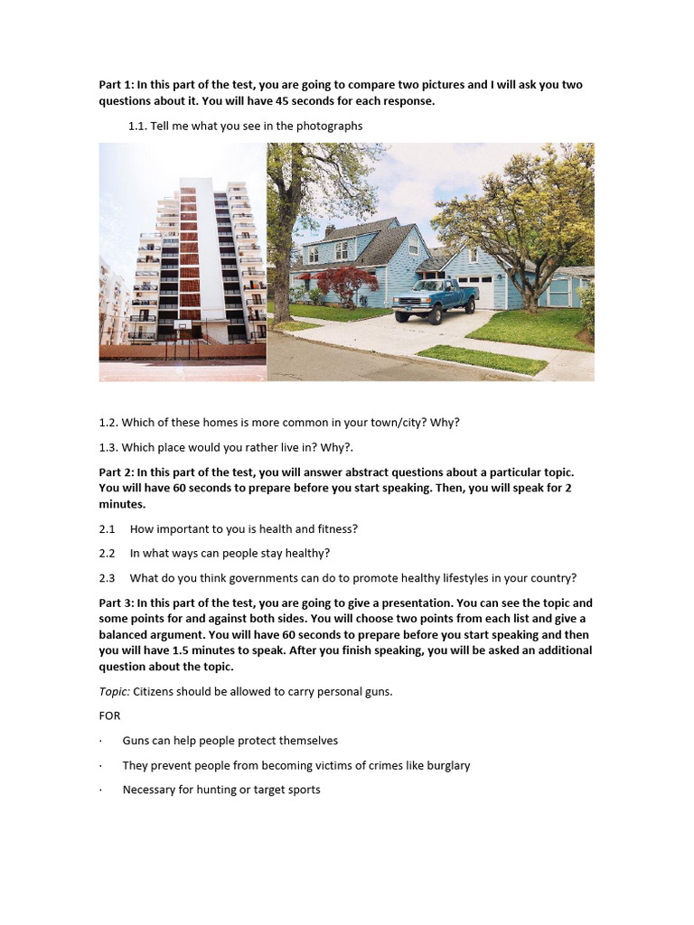 You will have 60 seconds to prepare before you start speaking. Then, you will speak for 2