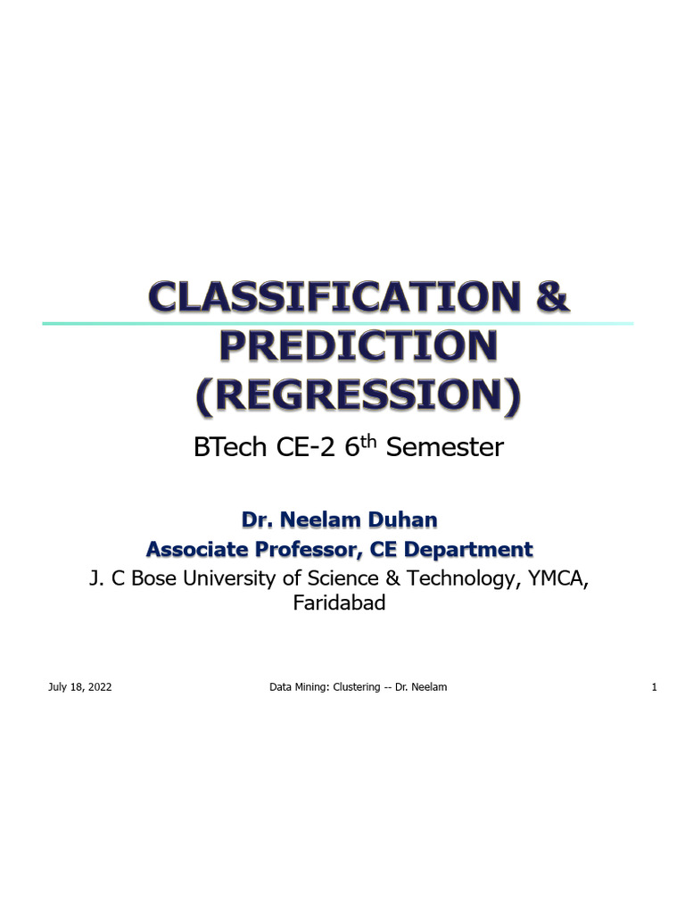 July 18, 2022 Data Mining: Clustering -- Dr. Neelam 1