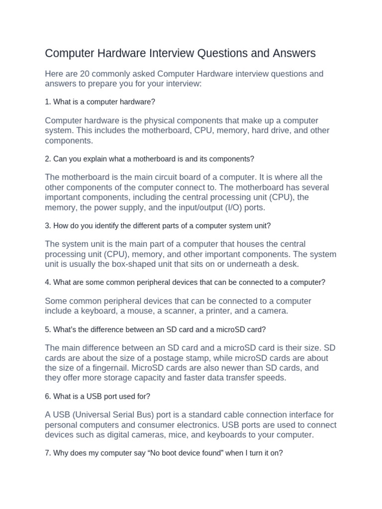 system. This includes the motherboard, CPU, memory, hard drive, and other