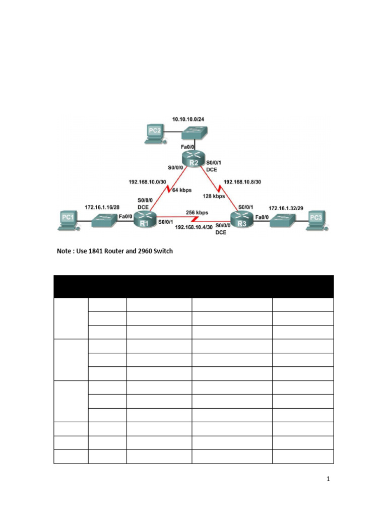 R1 S0/0/0 192.168.10.1 255.255.255.252 N/A