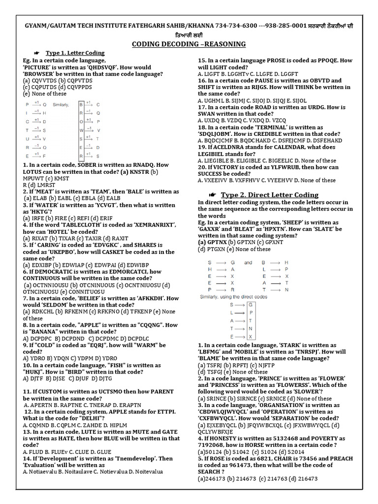 CODING DECODING –REASONING