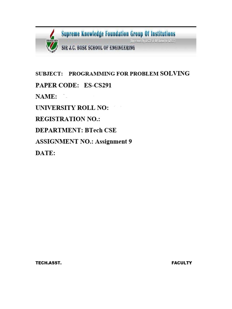 SUBJECT: PROGRAMMING FOR PROBLEM SOLVING
