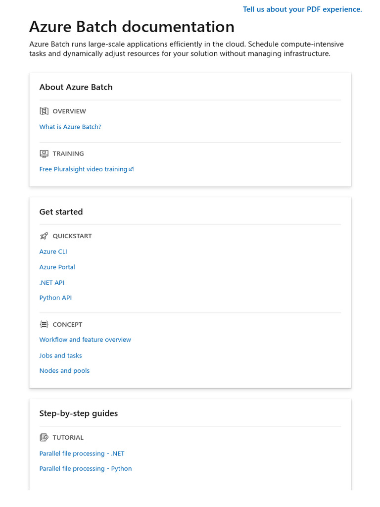 nodes, jobs, and tasks. Also see the latest Batch service updates .
