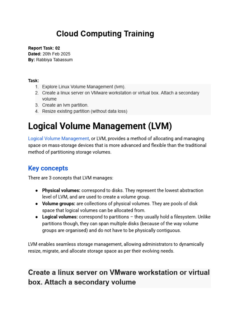 Logical Volume Management, or LVM, provides a method of allocating and managing
