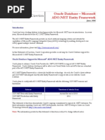 using a provider optimized for a specific database platform instead of the generic .NET OLE DB data provider. Oracle, Microsoft, and third-party vendors all offer .NET data providers optimized for an Oracle database. Oracle and Microsoft make their Oracle data providers available for free. Microsoft's provider for the .NET Framework is deprecated. Oracle continues to support and develop their .NET data provider, Oracle Data Provider for .NET (ODP.NET). In this article, we will use ODP.NET, which is included with the Oracle Database or as a separate download. ODP.NET provides standard ADO.NET data access, while exposing Oracle database-specific features, such as XML DB, data access performance optimizations, and Real Application Clusters load balancing and fast connection failover. The current ODP.NET version, 11.2, supports connecting to Oracle Database 9i Release 2 servers and higher versions. The database server can be on Windows, Linux, UNIX, or any other operating system platform Oracle database supports. When ODP.NET and Oracle client software are installed, application development using Visual Studio can begin. It's a good idea to confirm client connectivity before starting development. If you can connect to Oracle Database using Oracle client software, such as SQL*Plus on the same machine as Visual Studio, then your Oracle client-side software is properly installed and configured. If you are new to Oracle, see the section "Installing .NET Products" in the Oracle Database 2 Day Developer's Guide for background information regarding installing and configuring ODP.NET specifically, or to the Oracle Database Documentation Library for general information about Oracle Database.