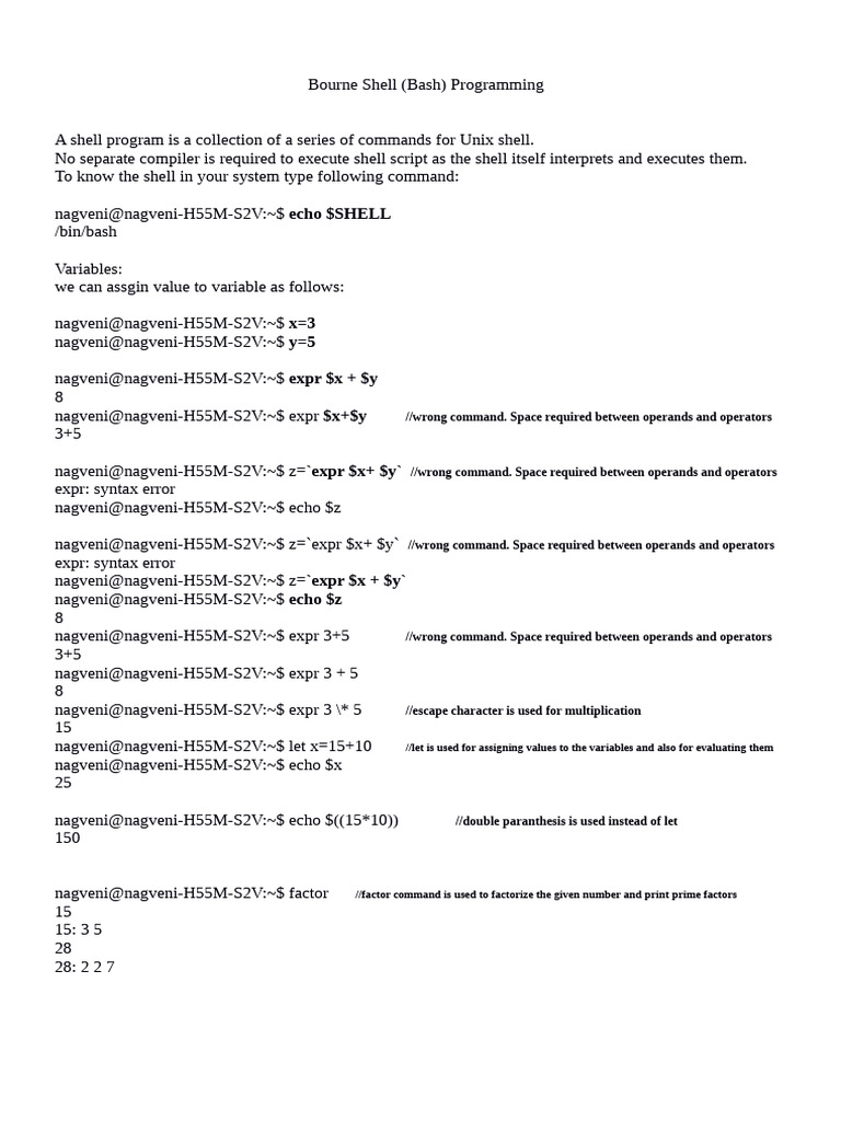 nagveni@nagveni-H55M-S2V:~$ expr 3+5 //wrong command. Space required between operands and operators