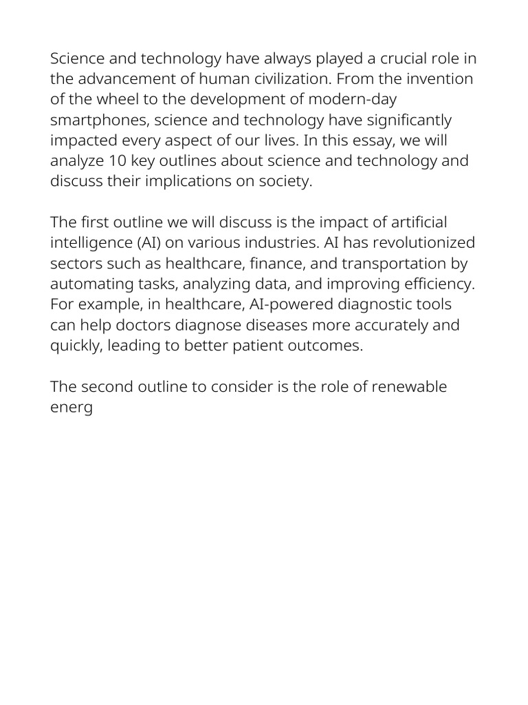 analyze 10 key outlines about science and technology and