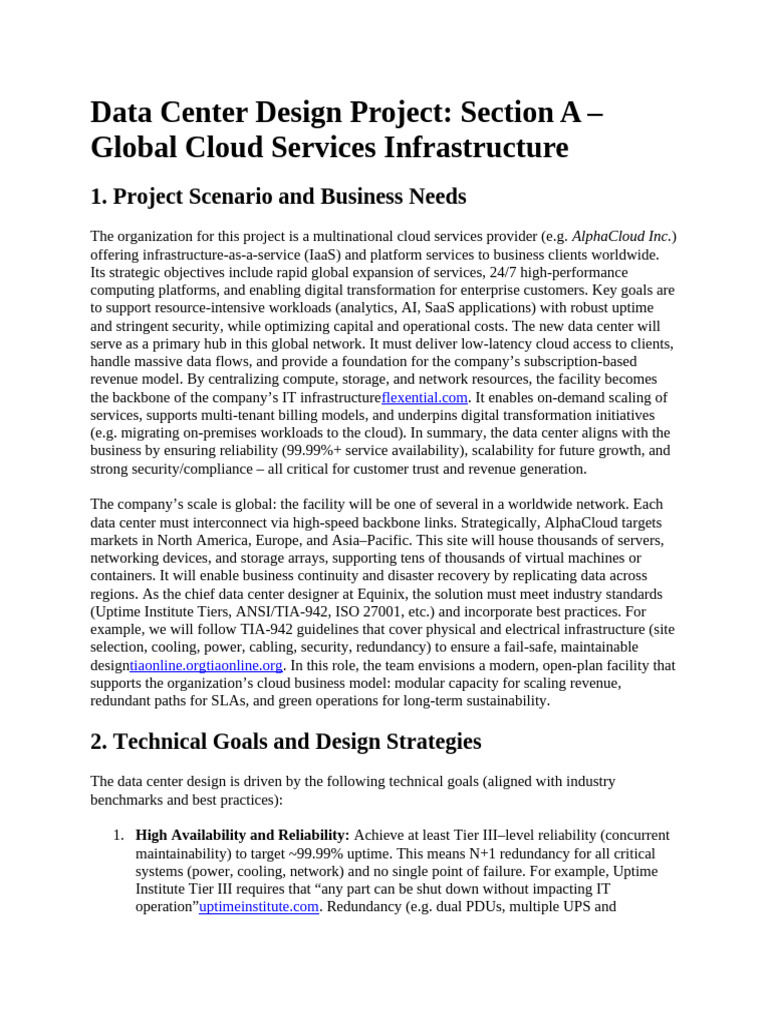 1. High Availability and Reliability: Achieve at least Tier III–level reliability (concurrent