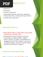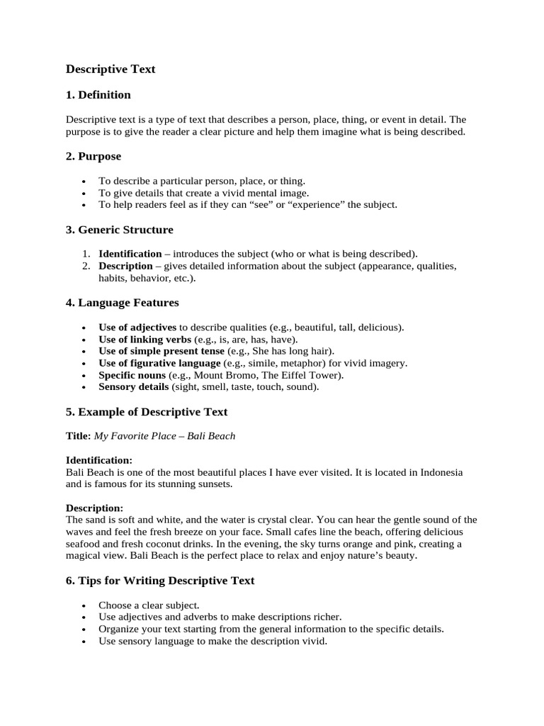 Descriptive text is a type of text that describes a person, place, thing, or event in detail. The