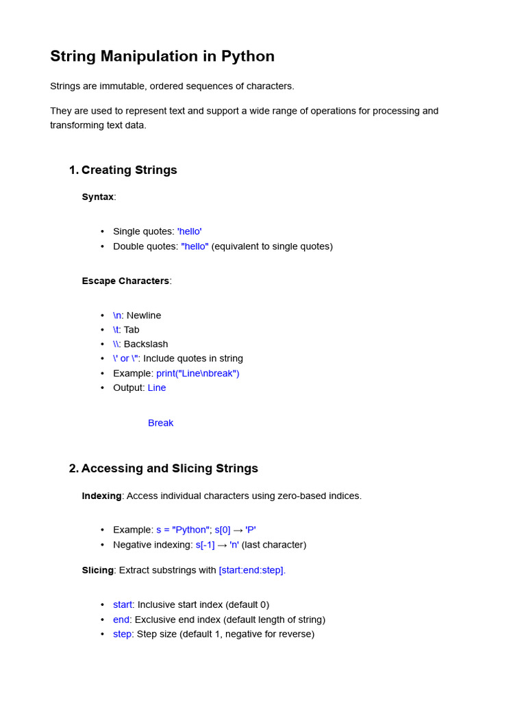 • f-strings (Python 3.6+): Embed expressions inside string literals.