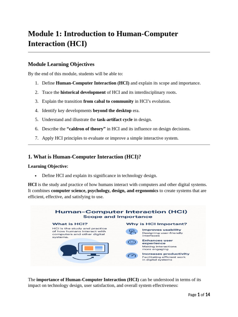 1. Define Human-Computer Interaction (HCI) and explain its scope and importance.