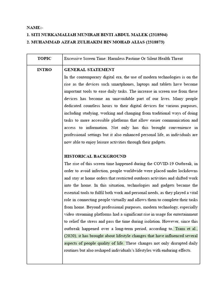 TOPIC Excessive Screen Time: Harmless Pastime Or Silent Health Threat