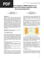 Note that both V + in and V + out represent waves going into the component by convention. Thus, the characterization is in terms of the scattering matrix S, and the scattering parameters are often termed S-parameters. Two or more components that are interconnected can conveniently be represented by the resulting scattering matrix, which can be computed from the individual S-parameters in a straightforward way, see [8], [9] for details. Microwave components can be simulated using Matlabs RF Toolbox and Simulinks RF Blockset. The Sparameters are there referred to as physical models. The components can be interconnected, and also connected to mathematical models through physical-to-mathematical and mathematical-to-physical conversion blocks. However, a serious drawback in the MIMO context is that RF Toolbox and Blockset only deals with two-port networks, that are represented by 2 2 scattering matrices. In an antenna array, there is always interaction between the elements (mutual coupling), which means that the antennas cannot be considered in isolation. An n-element antenna array is a multi-port component, which is represented by a 2n 2n scattering matrix [9]. One possible solution is to explicitly connect all antennas to each other in RF Blockset, where the connections include the S-parameters [10]. However, for larger systems such an approach is impractical. Therefore, we have developed an alternative implementation which uses a Matlab function to compute the resulting (mathematical) transfer function for all physical components. Consider the transmission model depicted in Figure 3. Only a 2 2 system is shown for simplicity, but the principle is equally applicable to the general case. The power amplifier (PA) is split into a mathematical model, which contains the forward transfer characteristics only, and a physical part, consisting of the PAs S22 parameter only. The backward transmission is assumed to be negligible, which is a good approximation for most practical amplifiers. Any interactions among the PAs, other than via the connected components, are also ignored. All PAs are connected to a matching network, whose task is to maximize the transmission efficiency of the antenna array [11]. In short, it counteracts the effects of mutual coupling between the antennas. The matching network is connected to