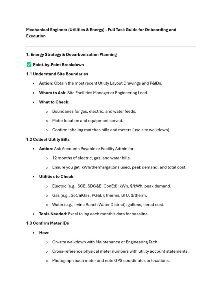 Mechanical Engineer (Utilities & Energy) - Full Task Guide for Onboarding and