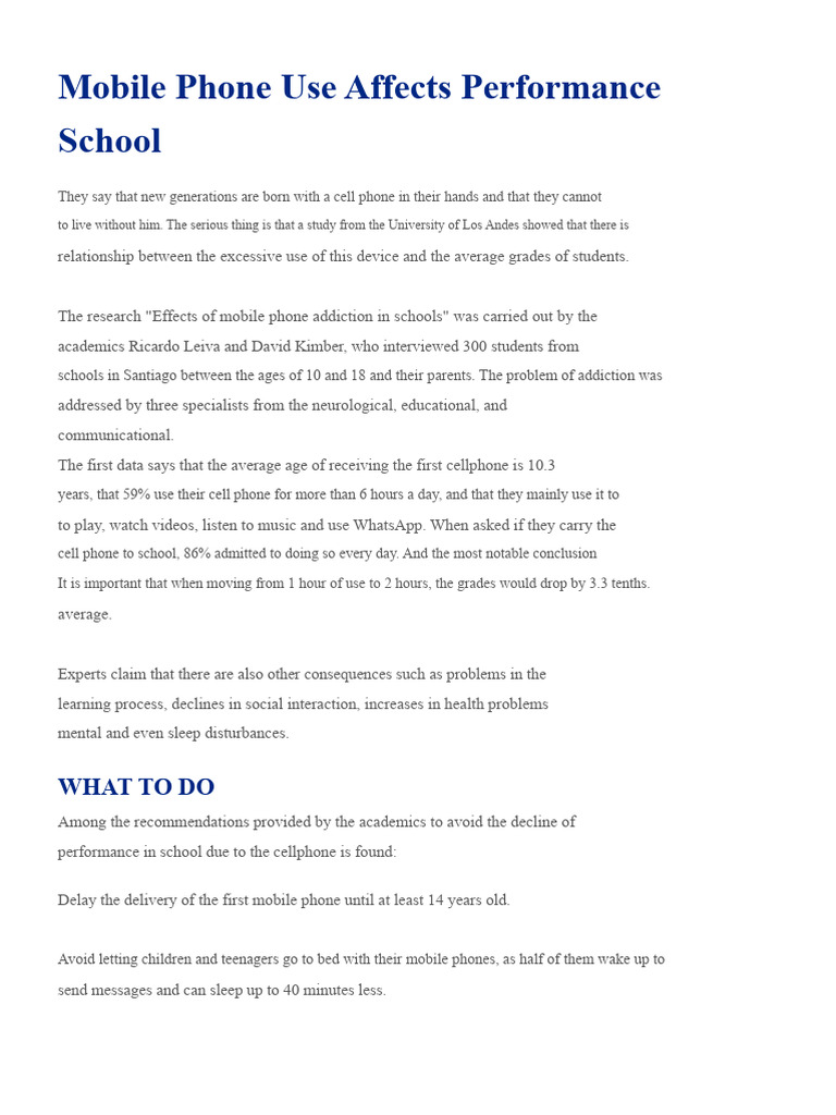 The research "Effects of mobile phone addiction in schools" was carried out by the