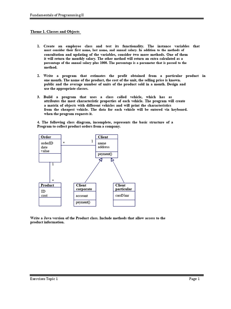a) Draw in UML the class diagram indicating the relationships between them and the