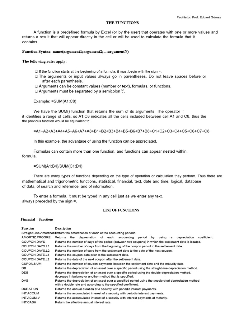 A function is a predefined formula by Excel (or by the user) that operates with one or more values and