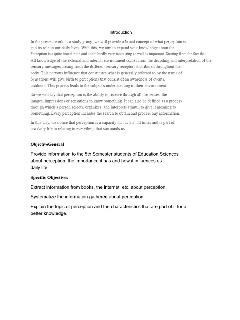 In the present work as a study group, we will provide a broad concept of what perception is.