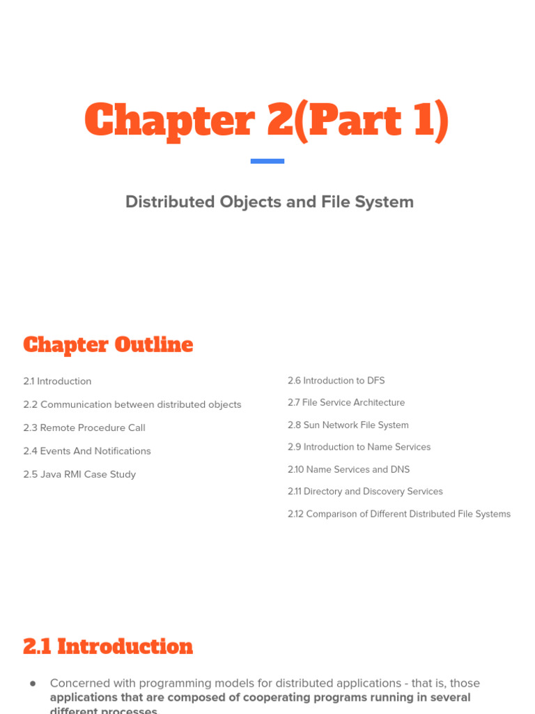 2.2 Communication between distributed objects 2.7 File Service Architecture