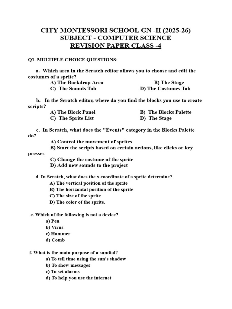 REVISION PAPER CLASS -4