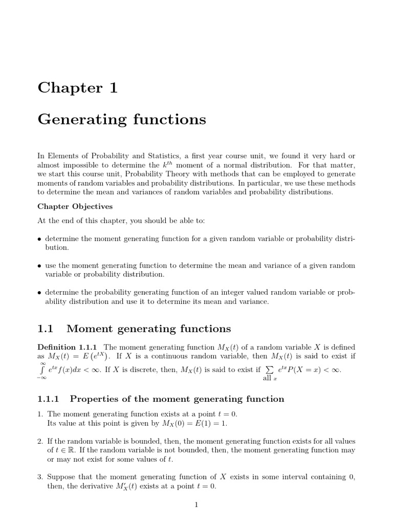 1.4. PROBABILITY GENERATING FUNCTIONS 15