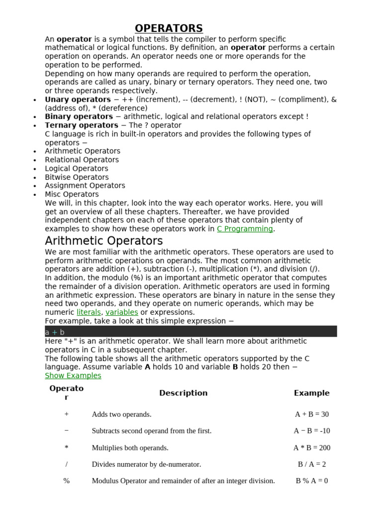 language. Assume variable A holds 10 and variable B holds 20 then −