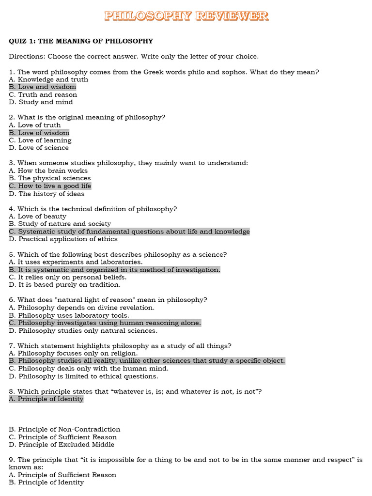 QUIZ 1: THE MEANING OF PHILOSOPHY