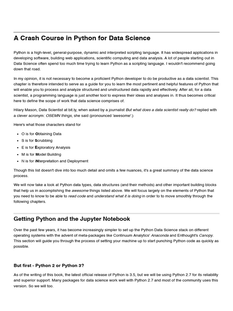A Crash Course in Python For Data Science
