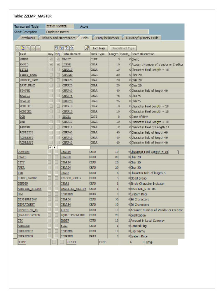 Table: ZZEMP_MASTER