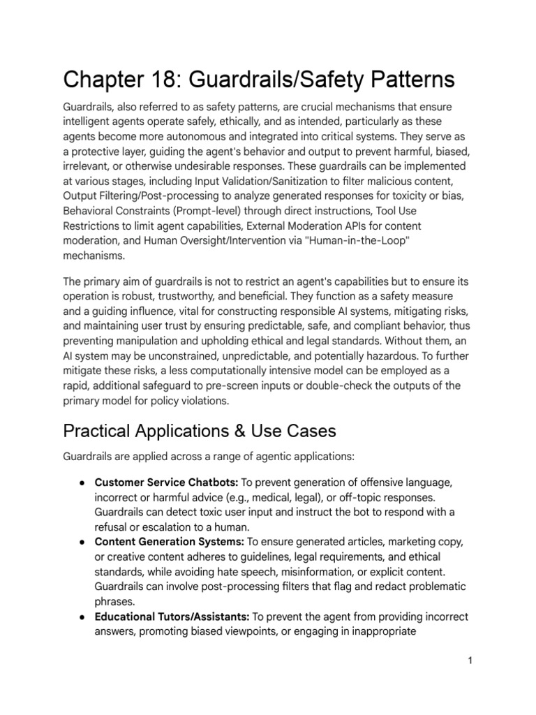 Guardrails, also referred to as safety patterns, are crucial mechanisms that ensure