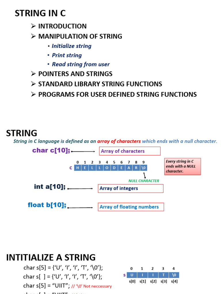 char s[ ] = “UIIT”; // ‘\0’ Not neccessary