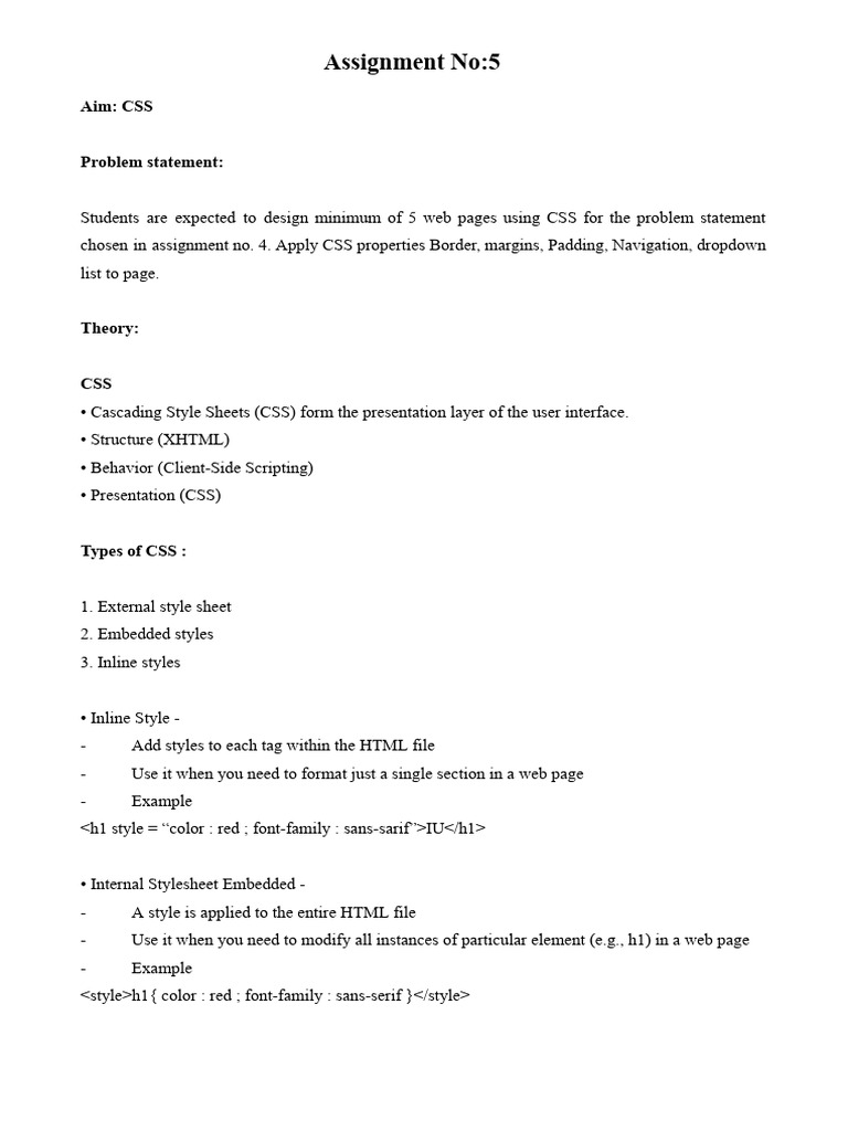 Students are expected to design minimum of 5 web pages using CSS for the problem statement