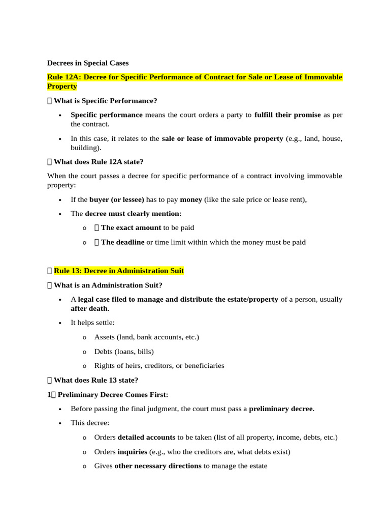 Decrees in Special Cases