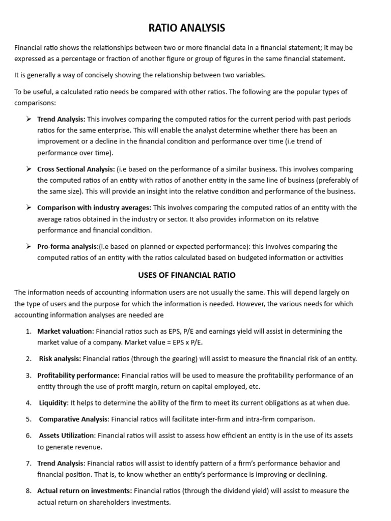 ➢ Comparison with industry averages: This involves comparing the computed ratios of an entity with the
