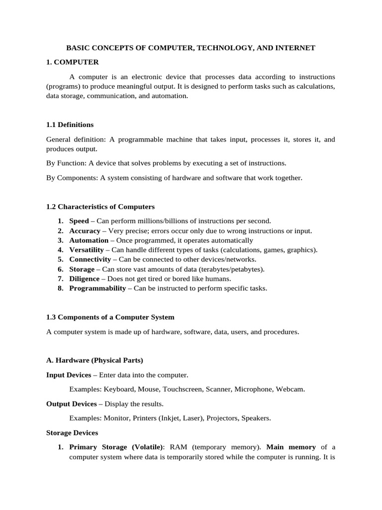 BASIC CONCEPTS OF COMPUTER, TECHNOLOGY, AND INTERNET