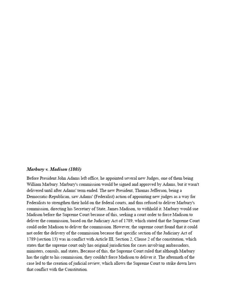 case led to the creation of judicial review, which allows the Supreme Court to strike down laws