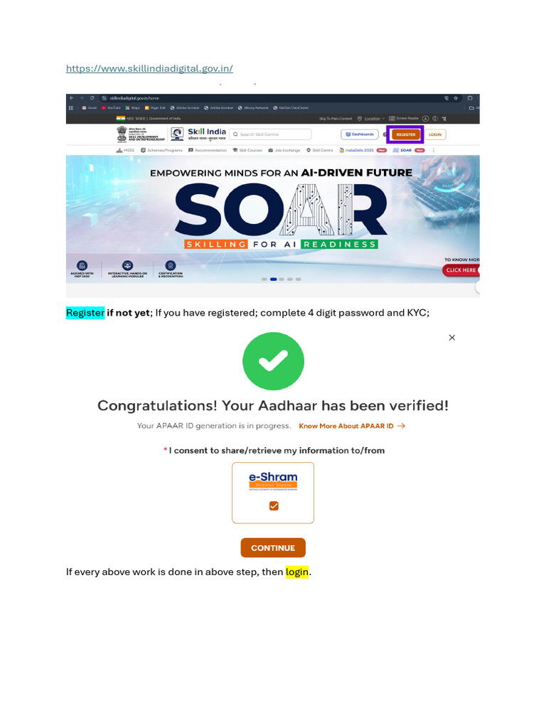 You will get confirmation on WhatsApp about enrolled skill course. Continue the